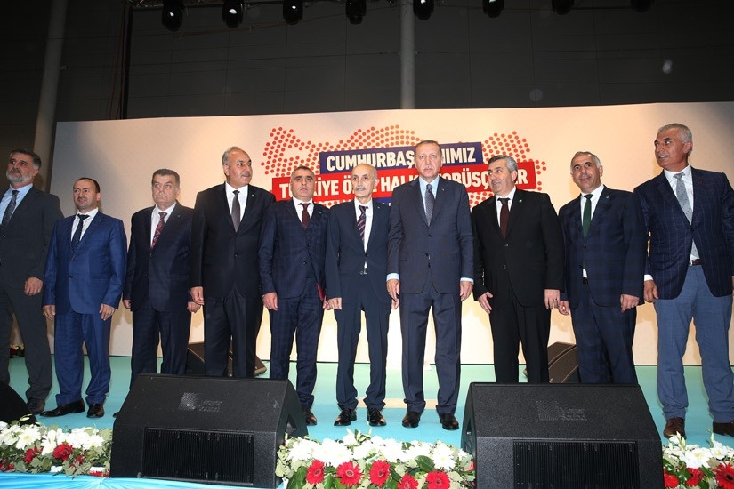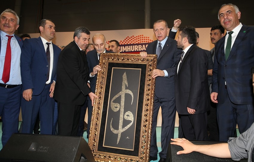 Program sonunda TÖHOB Başkanı İsmail Yüksel ve İstanbul Özel Halk otobüsü Esnaf Odası Başkanı Göksel Ovacık, Cumhurbaşkanı Erdoğan’a Hat ve Tezhip sanatçısı Tolga Ayvaz’ın yaptığı Elif içerisinde Ayetel Kursi ve Nazar ayeti yazılı tabloyu hediye takdiminde bulundular