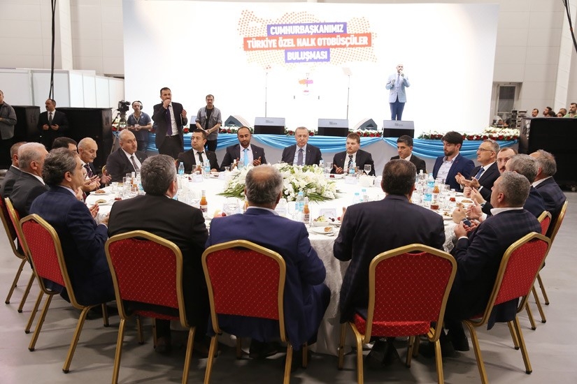 Cumhurbaşkanı Recep Tayyip Erdoğan, Yenikapı’daki Avrasya Gösteri Merkezinde Özel Halk Otobüsleri Birliği (TÖHOB) ve İstanbul Özel Halk otobüsü Esnaf odası ile Türkiye genelinde esnaf odalarının birlikte düzenlediği iftarda Özel Halk otobüsü esnafları ve şoförleri ile bir araya geldi.